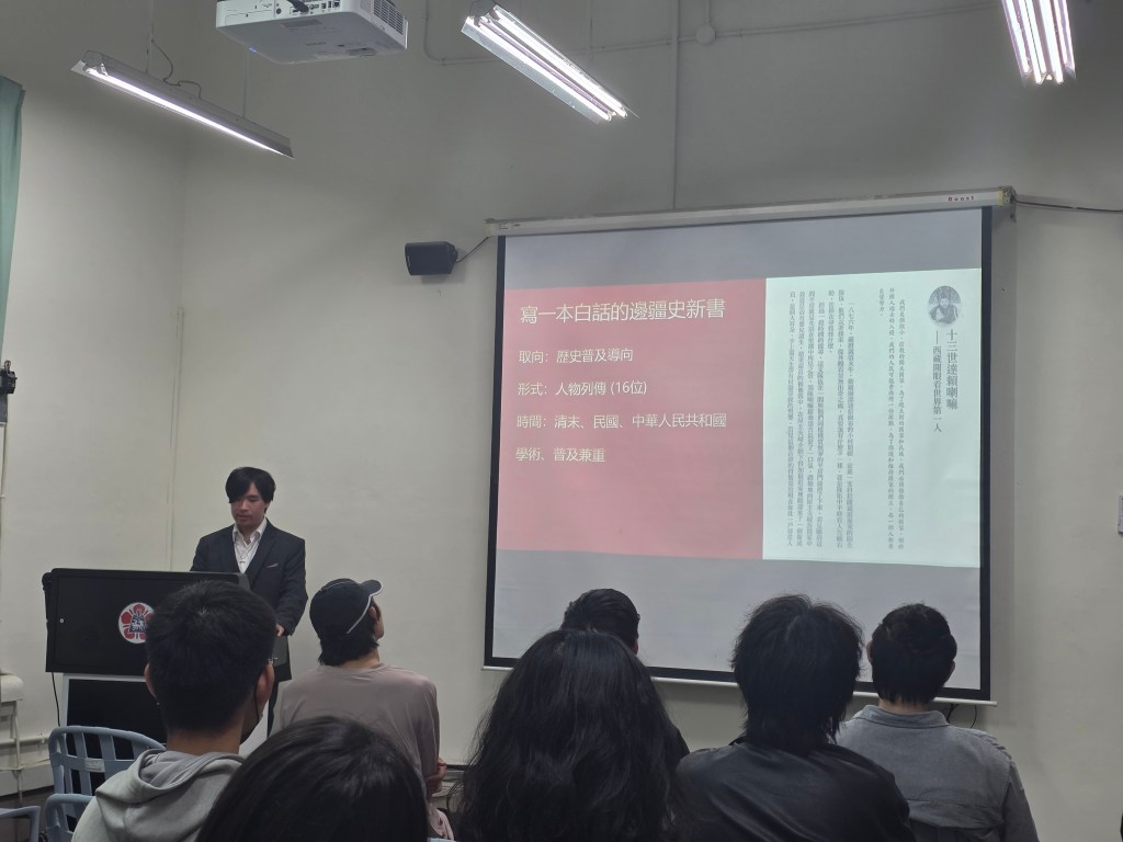 為了破除「歷史無用」的迷思並釐清出版產業的真實面貌,本次講座特別邀請到在大四畢業前即成功出版個人著作,躋身青年作家的柯睿信學長到講座中分享。他以自身新書《邊疆變局:信仰、改革與帝國角力的歷史現場》為例,分享他如何從大二開始佈局,將生澀的邊疆史轉化為具備市場共鳴的「白話歷史」。